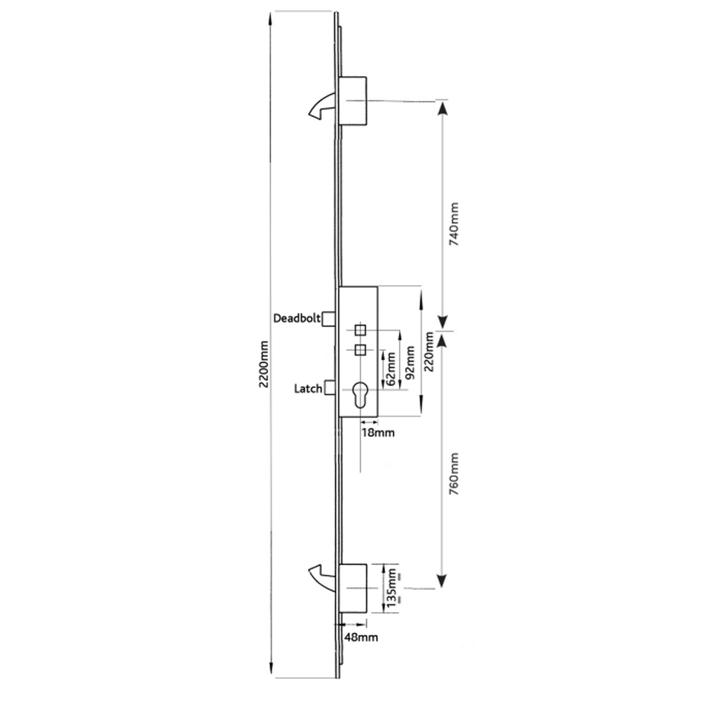 Gearboxes measure 220mm high x backset +15mm. Be sure to allow for 2mm when measuring the backset on a lock that already has the faceplate fitted.
